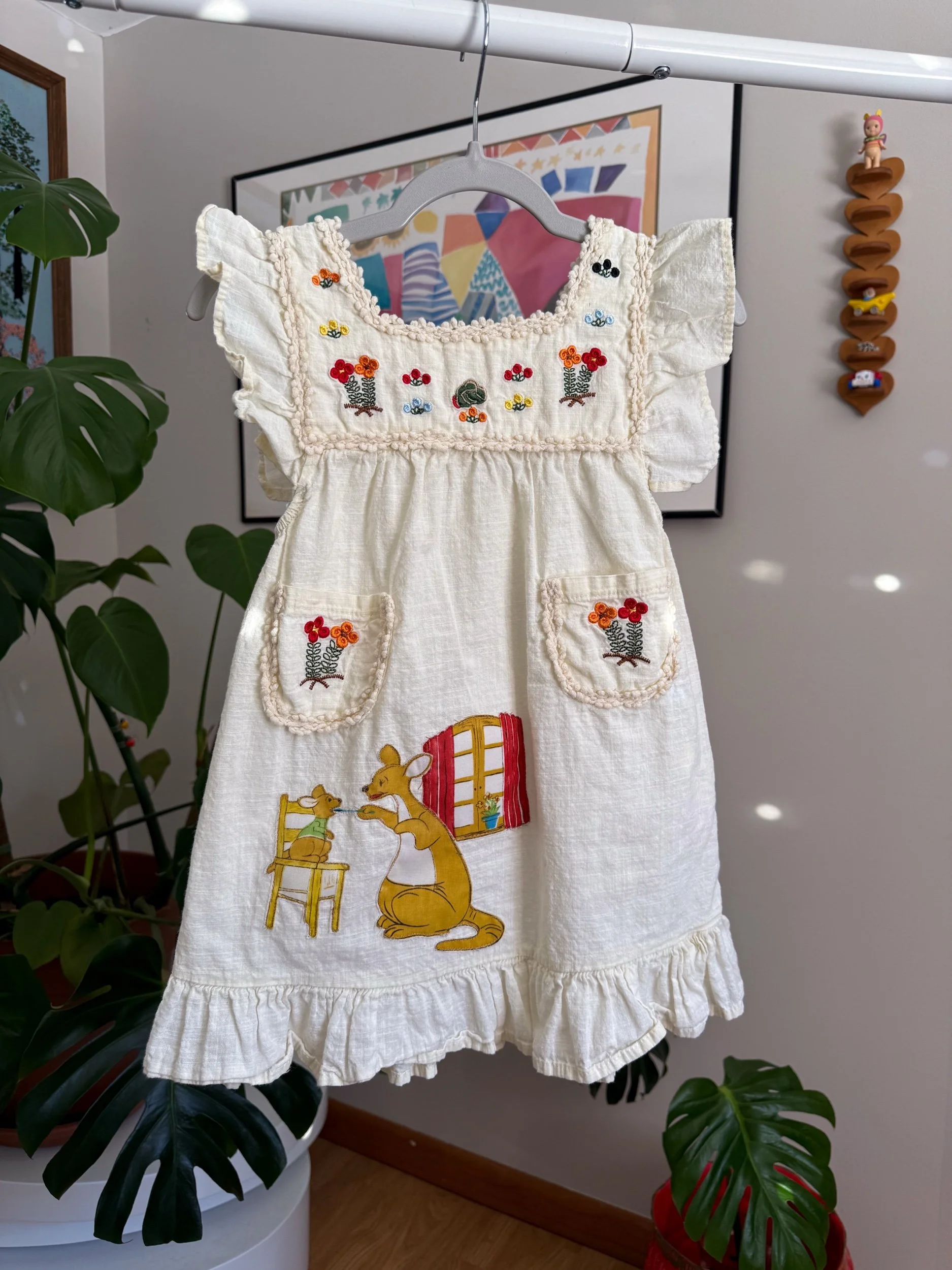 This item was partly made with vintage character fabric thrifted secondhand from a thrift store :)